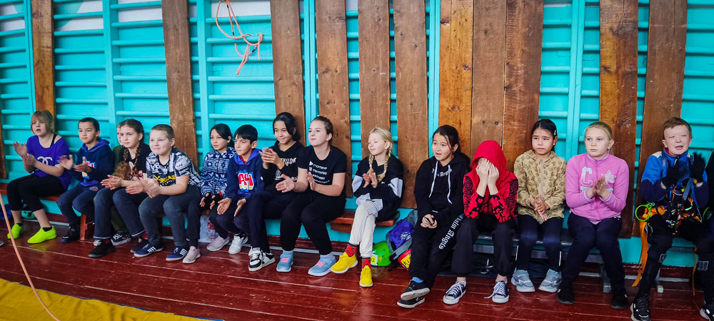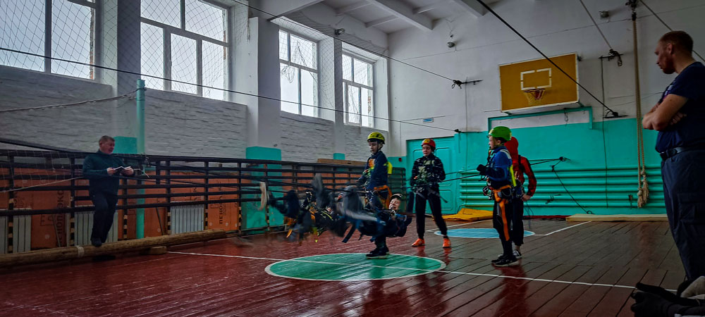 Ребята разделились на две возрастные группы. В младшей приняло участие 17 человек. Участников разделили на равные команды по 4 человека. Дети придумали название и девиз своих команд. Эстафетная палочка был жумар с карабином. Полоса препятствий состояла из этапов: вертикальный маятник, подъем по перилам, переправа по бревну, перестежка карабинов, параллельные перила.